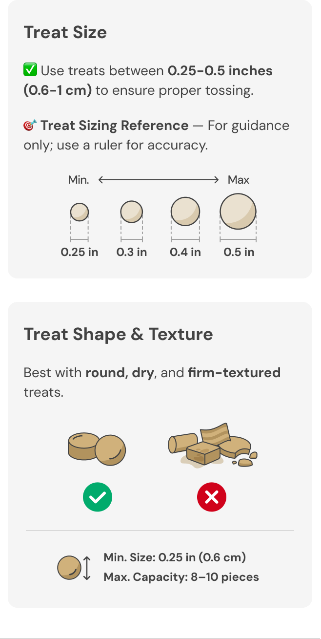 | Check the Treat Guide for suitable treats. Insert them vertically, one at a time. |