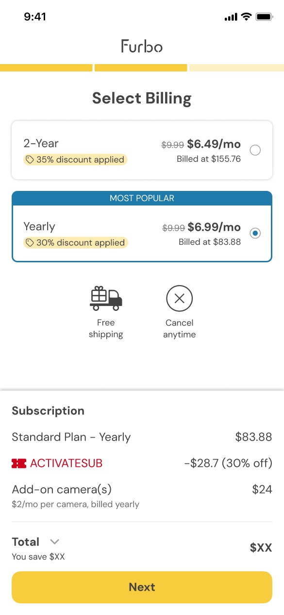 - Add Cameras to your subscription to add your existing Furbo Camera