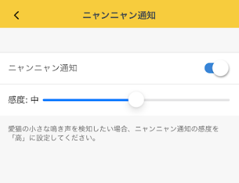 ※Furboが環境音を拾い、ニャンニャン通知が届く場合がございますが、感度を調節することができます。