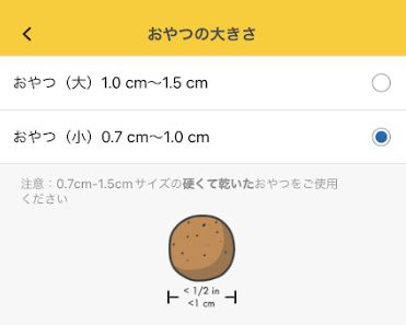 ※アプリ上からもおやつのサイズに合わせて、設定することができます。