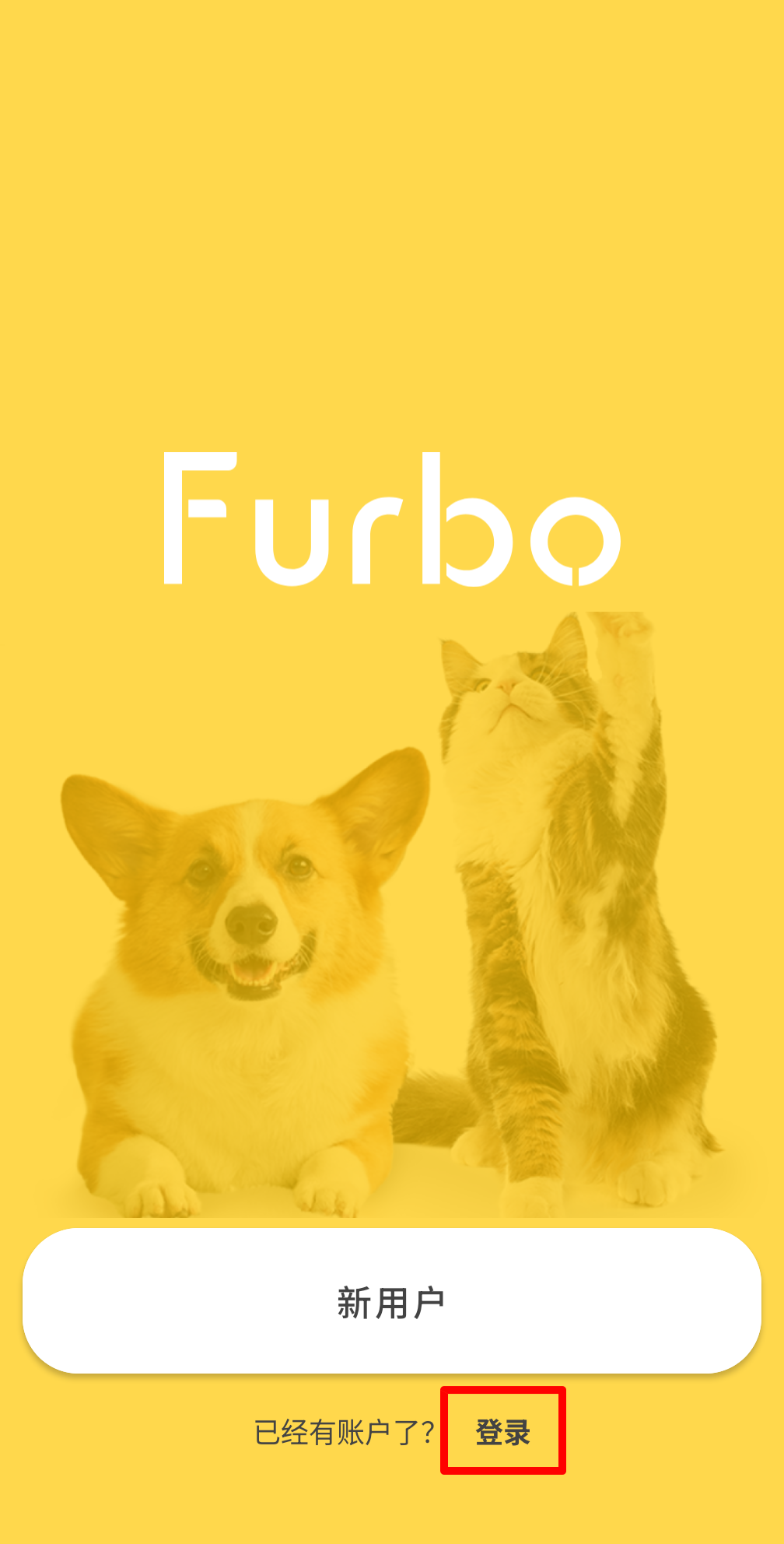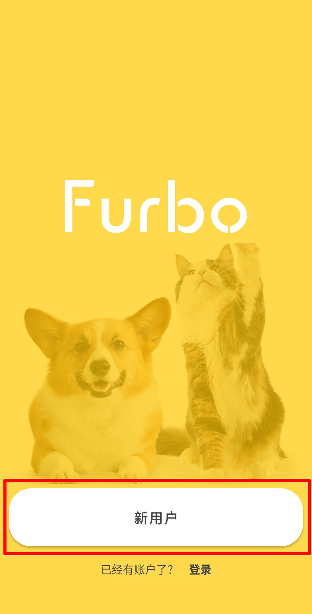 - 请点击"新用户"开始注册账号(Furbo 账号将会是您的手机号)